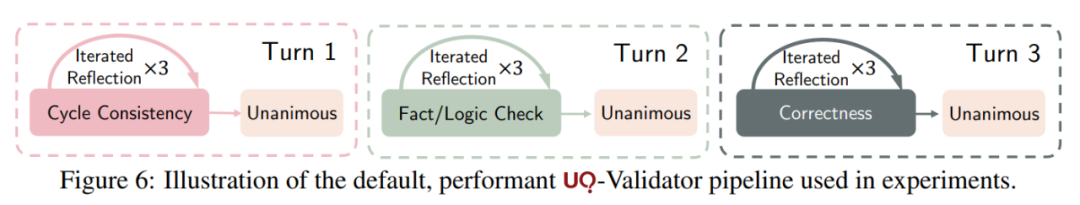 • UQ-Validators:复合验证策略,利用生成器–验证器之间的能力差距来构建无真值验证系统(一般而言模型验证能力优于生成能力),并对候选答案进行预筛选,以便后续人工审核;