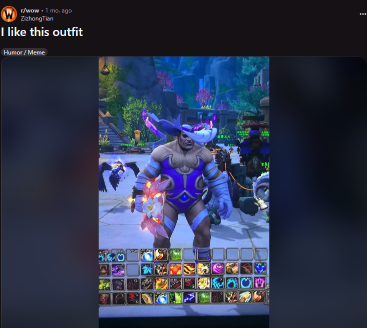 比如不久之前,《魔兽世界》国服就推出了独家的“虚空之缚泳装”,让不少外服玩家一度破防。在各大论坛内,不少玩家纷纷发帖,请求官方将这个国服外观“移植”到其他服务器中,这些帖子下面往往还会有人杀人诛心地回上一句“再跟你提一嘴,他们还有飞行幽灵虎”。