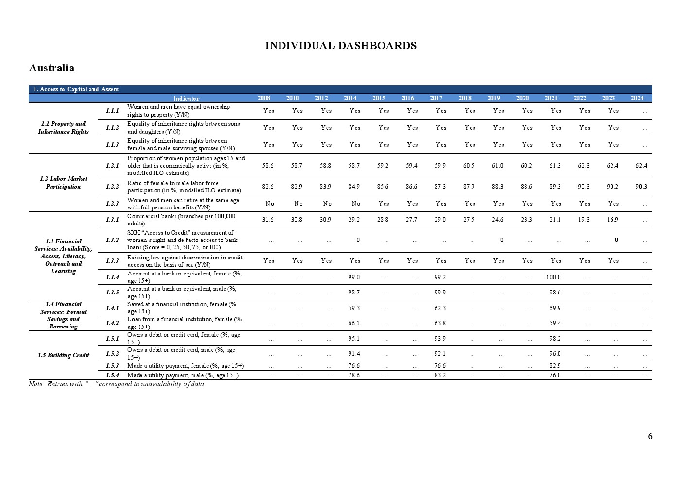 • 妇女在就业方面持续面临法律和结构性障碍,包括在大多数经济体中存在对某些行业工作的限制、缺乏针对职场歧视的法律保护以及不平等的薪酬立法。