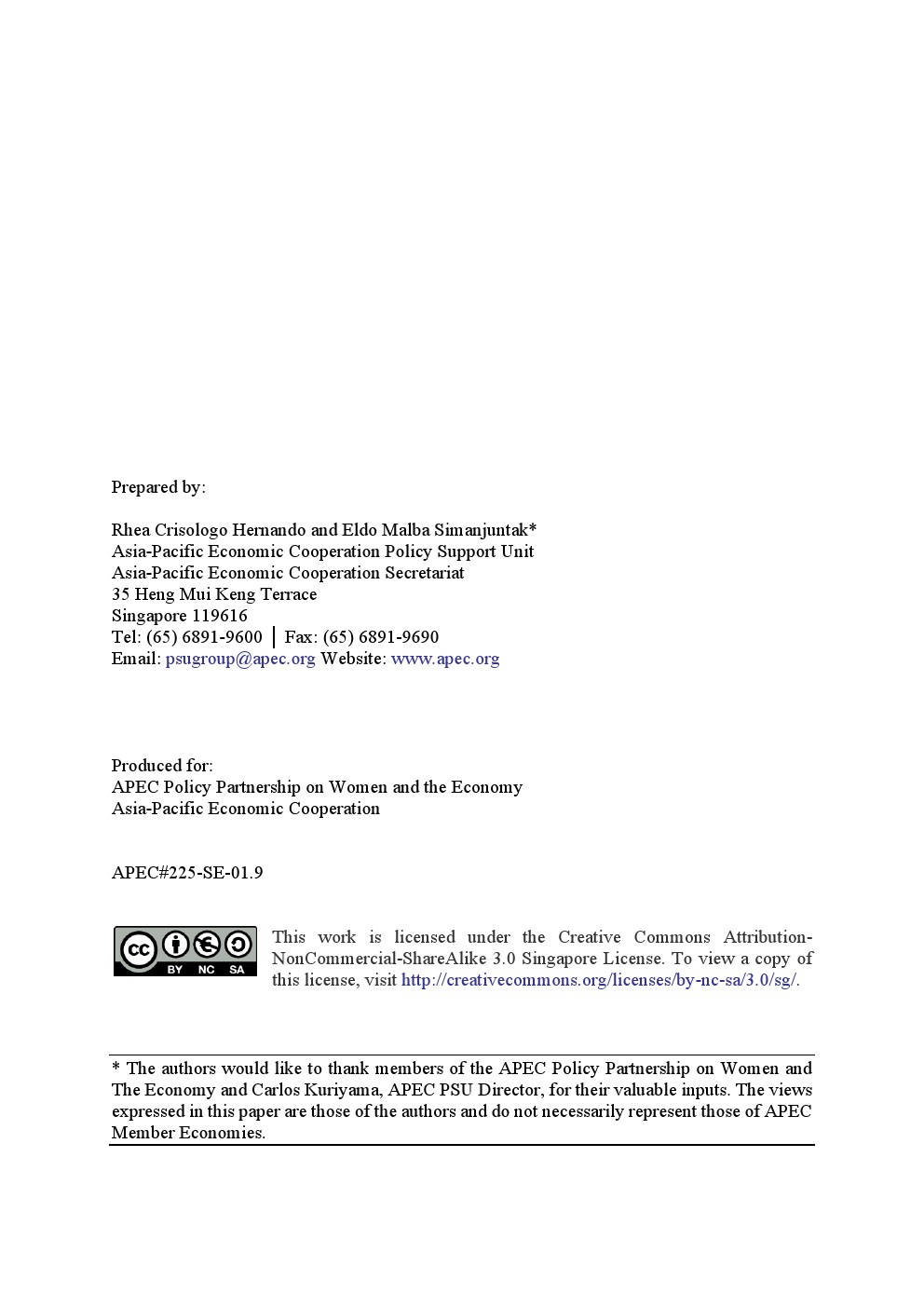 • 妇女获得金融服务的情况有所改善,正规账户拥有率从十年前的59%提高到2021年的82%。只有不到一半的APEC经济体制定了禁止在信贷获取中存在基于性别歧视的法律。