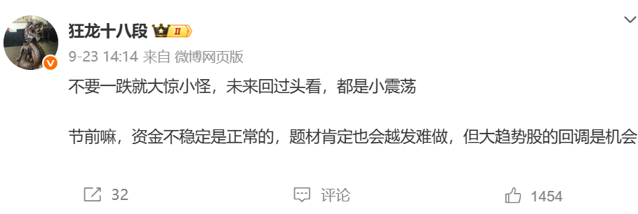 2、知名大V狂龙十八段最近也分享了自己的观点: