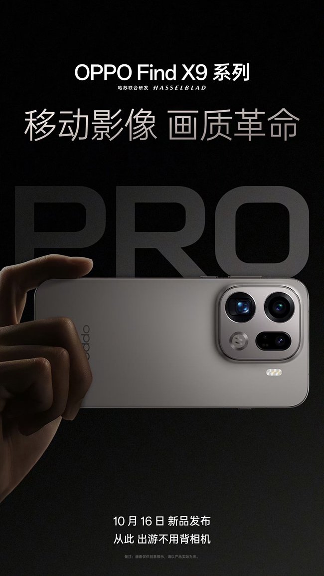以审美牵引技术,以技术驱动革新,OPPO 正引领移动影像“画质革命”,让每一帧精彩影像都能被真实、鲜活地记录,持续践行“拍人好”初心。10 月 16 日,全新 OPPO Find X9 系列全球正式发布,届时将揭晓更多产品细节,敬请持续关注,一起见证移动影像进入超清时代。