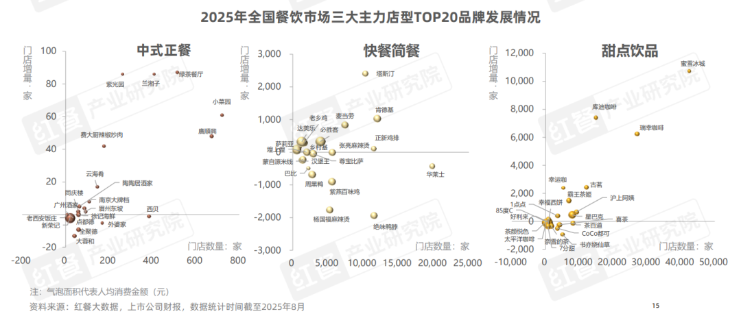 近年来,餐饮市场的进一步分化,背后其实隐藏着的是新旧模式之争。能系统性解决成本、效率与同质化问题的新模式正带领着餐饮企业弯道超车。例如,中餐正餐中,传统酒楼承压,而垂直的地方小炒类通过供应链整合与质价比实现逆势扩张。西式快餐凭借标准化稳健增长,中式小吃则因同质化面临闭店潮。甜点饮品赛道内卷加剧,低价品牌靠价格战扩张,中高端品牌闭店率攀升。
