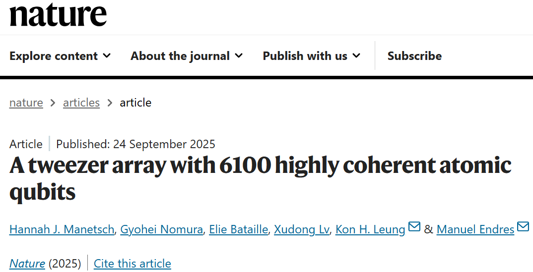 近日,美国加州理工学院团队造出了目前全球最大的中性原子量子计算机, 实现了超过 6100 个量子比特的一致性,同时实现了 99.98% 的运行精度,量子比特保持相干性长达 13 秒,这一相干时间比此前实验长了将近 10 倍,相关论文发表于最新 Nature 期刊。 此前曾在该团队从事博士后研究、目前在中国科学院上海光学精密机械研究所担任研究员的吕旭东是论文共同作者。研究团队在加州理工学院的官方新闻稿中表示,对于中性原子计算来说,这是一个激动人心的时刻,这意味着“基础模块”已经就位,让人们看到了一条通往大型纠错量子计算机的道路。