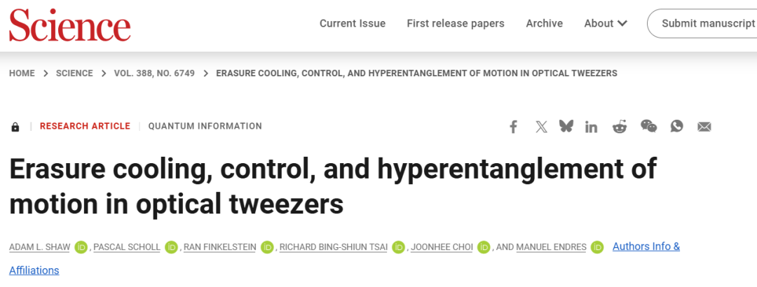 2025 年 5 月,该团队曾完成了一项在光镊中进行电子冷却、控制和运动超纠缠的成果,相关论文发表在 Science 。在当时这项研究中,他们使用了一种与物种无关的冷却机制,完成了原子的运动基态的准备,进而让上述机制将运动激发转发为位置已知的擦除误差。据介绍,这种冷却机制从根本上优于理想化的传统边带冷却机制。通过针对由此产生的纯运动态进行相干操控,该团队通过局部搁置进入了运动叠加态,进而实现了电路中读出和电路中的擦除检测。同时,他们分别在不同的光镊中针对两个原子的运动进行纠缠,并通过同时制备运动和光学量子比特的贝尔态来产生超纠缠,借此解锁了一种利用中性原子的量子操作。