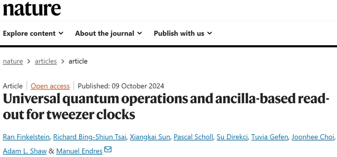 2024 年 10 月,该团队在一篇 Nature 论文中展示了通用量子操作和基于辅助的中性原子超窄光学跃迁读出的成果,并在光镊时钟平台演示了使用中性原子光钟进行基于电路的量子计量方法。基于此, 他们通过光时钟量子比特的里德堡相互作用和动态连接,实现了保真度为 99.62% 的双量子比特纠缠门,并将其与局部寻址相结合,实现了通用可编程量子电路。利用这种方法该团队生成了接近最优的纠缠探测态。