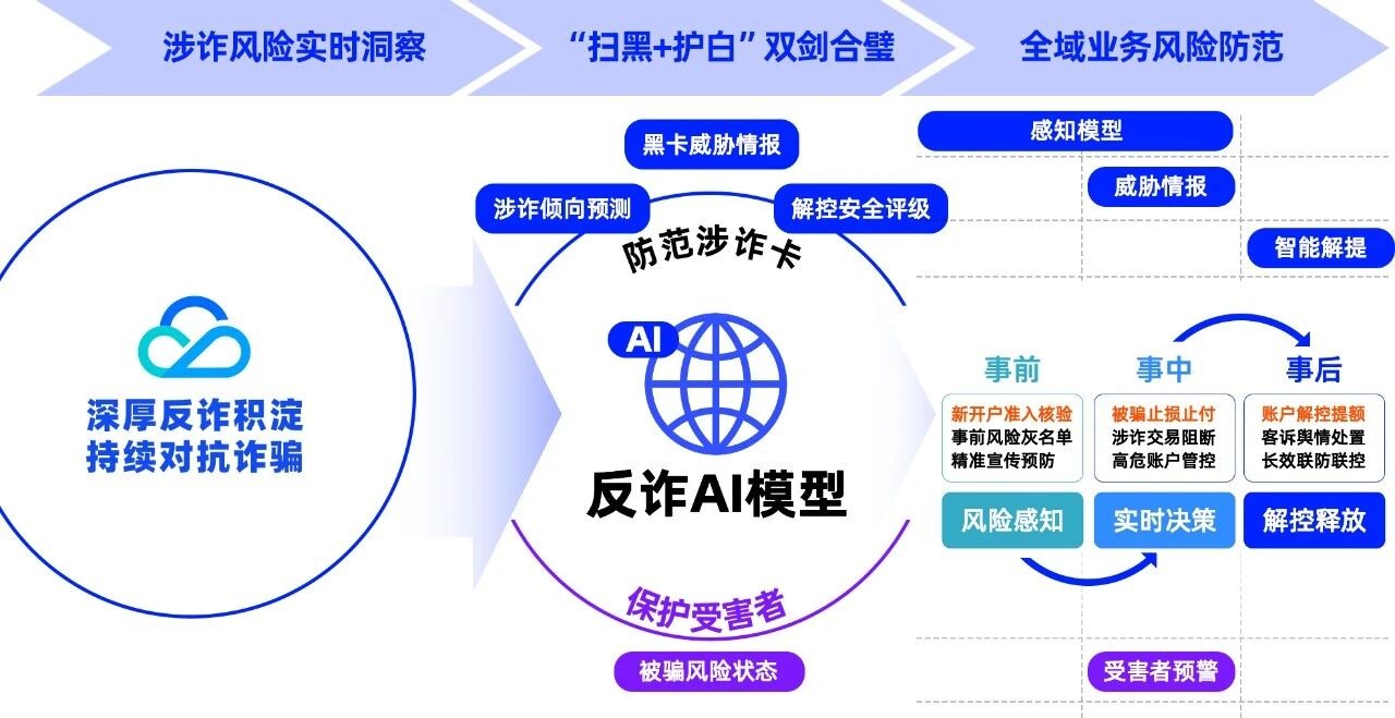 在涉诈账户治理方面,天御帮助客户高效构建“事前尽调、事中保护、事后释放”的账户全生命周期反诈体系: