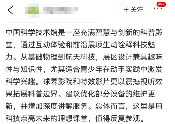 来源: 科技日报综合中国科学技术馆、携程网友评论等