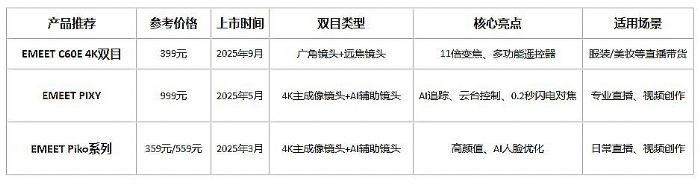 EMEET壹秘通过C60E 4K双目、Piko系列和PIXY三款产品,构建了完善的双目摄像头产品矩阵。这一战略深度契合了当下内容创作大众化的趋势——让专业级影像工具从少数人的特权,转变为每个创作者触手可及的日常工具,完美践行了品牌”技术普惠”的核心理念。