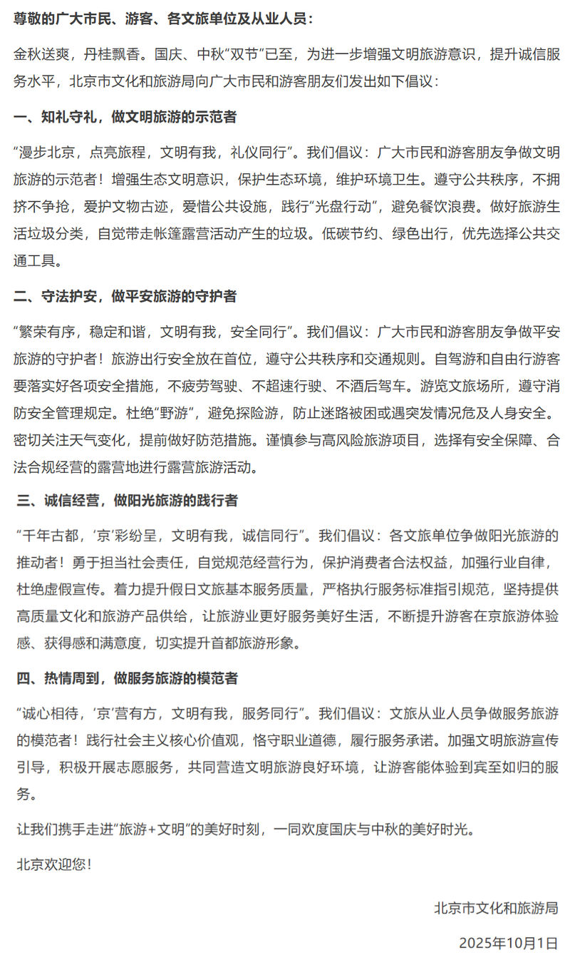 未经允许不得转载:紫竹林-程序员中文网 » 国庆中秋假期首日,北京迎客314.3万人次