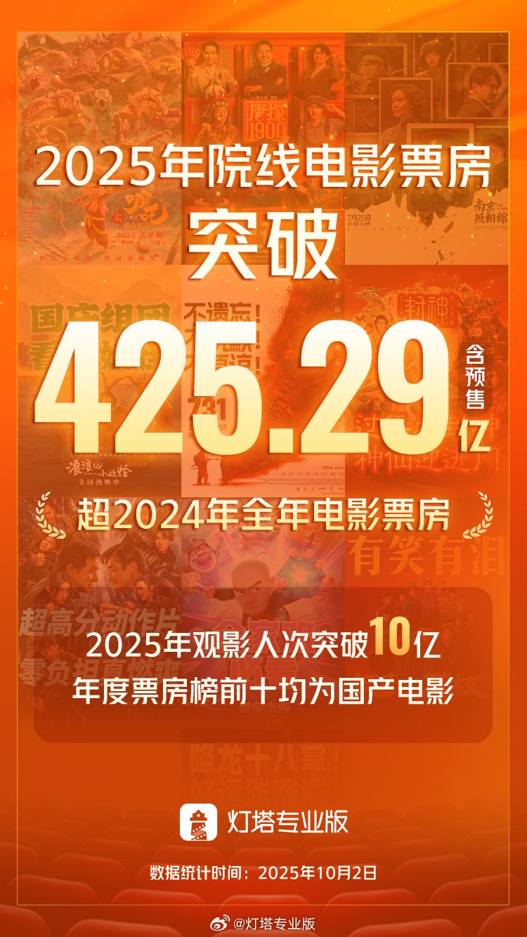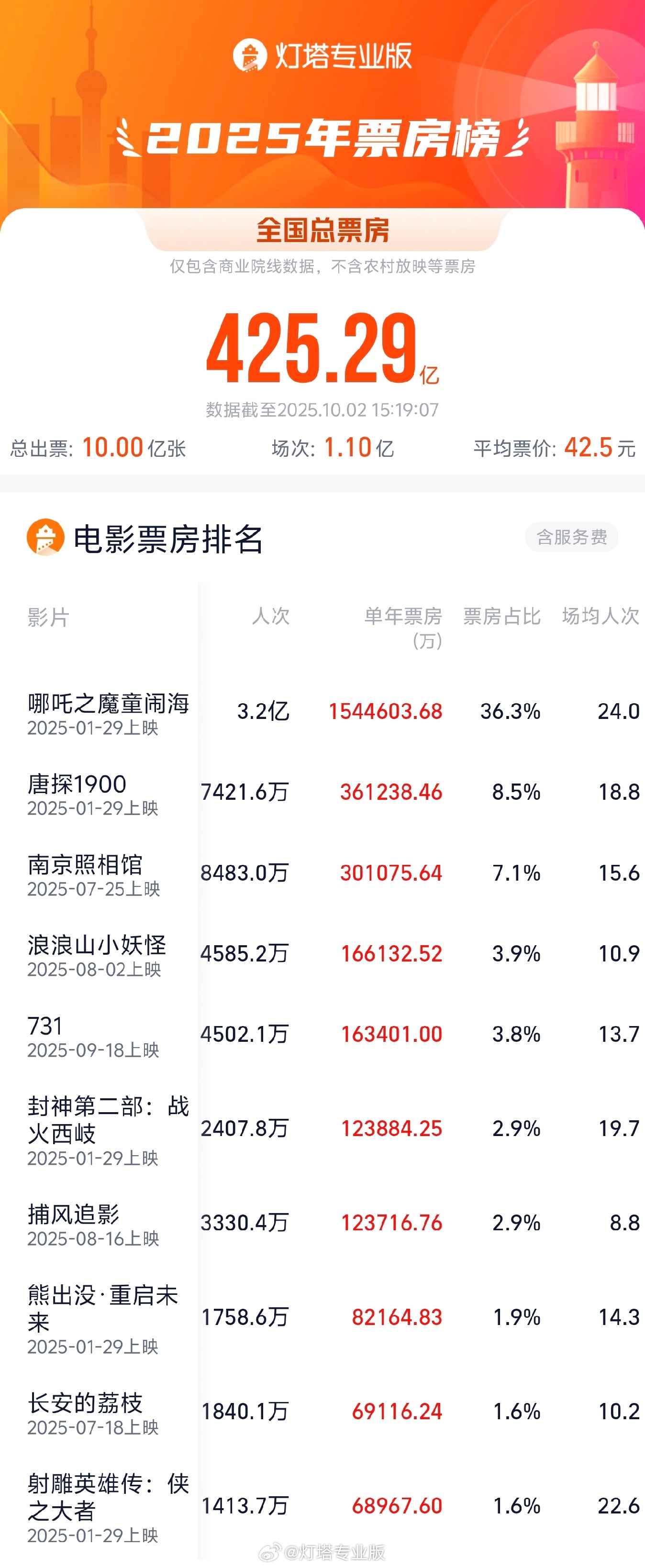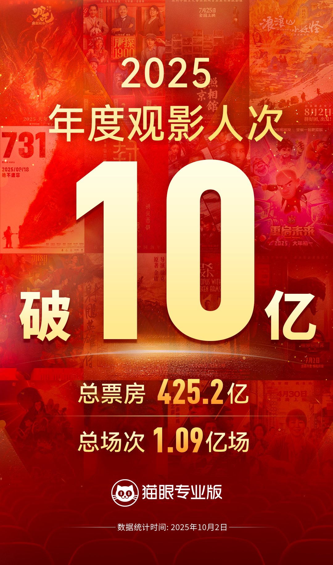 未经允许不得转载:紫竹林-程序员中文网 » 2025 年全国观影人次破 10 亿:平均票价 42.5 元,你看了哪部?