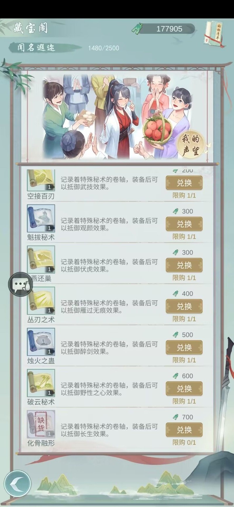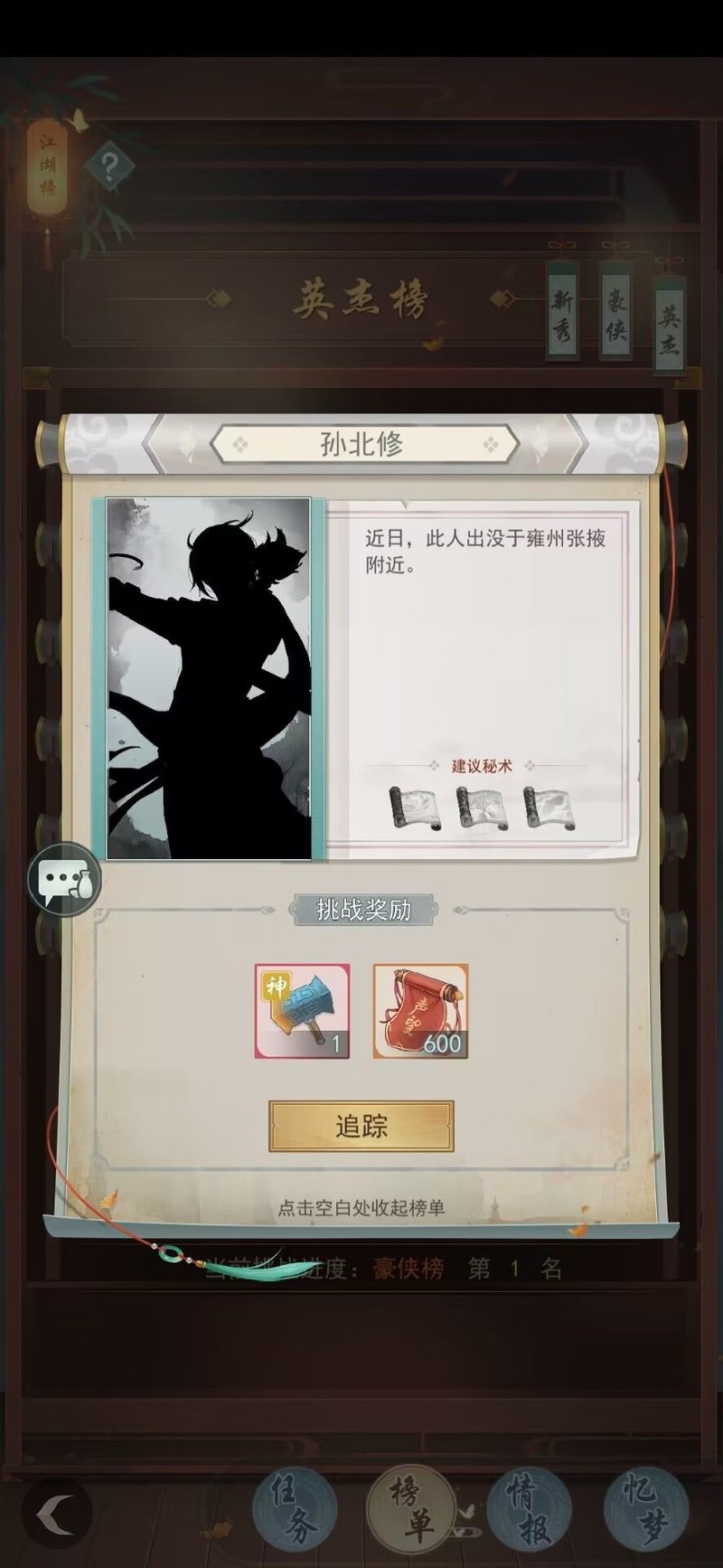 优先升级降低行动力消耗的技能,挑战豪侠榜首位前需加入铸剑山庄获取秘术化骨融形,方可取胜,该内容需累计七万声望币解锁。