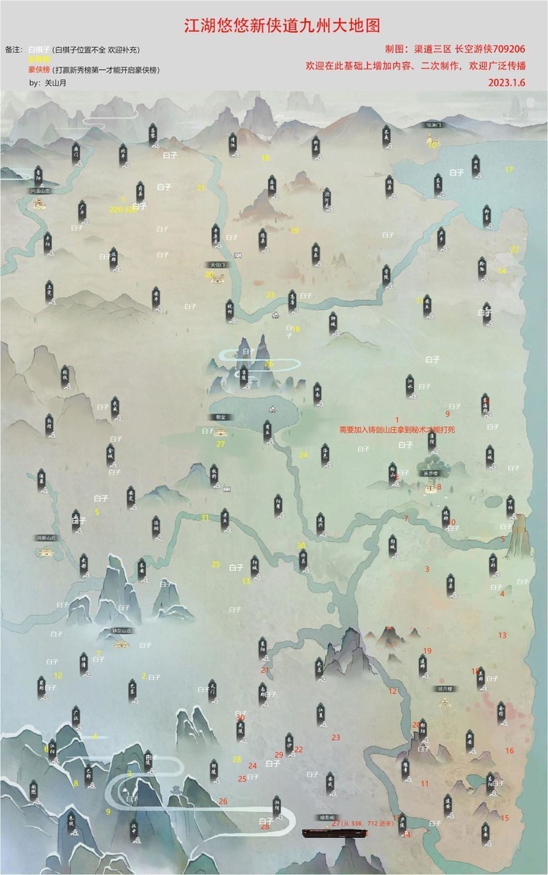 2023年1月11日更新:已完成七个账号的整理,标注了白棋子的大致位置,便于新手查找。手机端显示不清时,建议使用电脑放大查看地图细节。