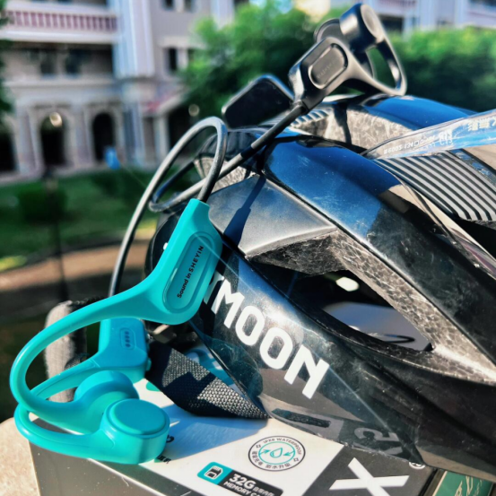 最让我安心的是它的开放式骨传导设计。和普通封闭式入耳耳机不一样,它不堵耳朵,骑车时能清楚听见周围汽车的喇叭声、骑友的呼喊声,甚至远处路口的红绿灯提示音,安全感直接拉满。以前用入耳式耳机骑行,总怕听不见周围动静,心里悬着,现在终于能踏实享受骑行和音乐了。
