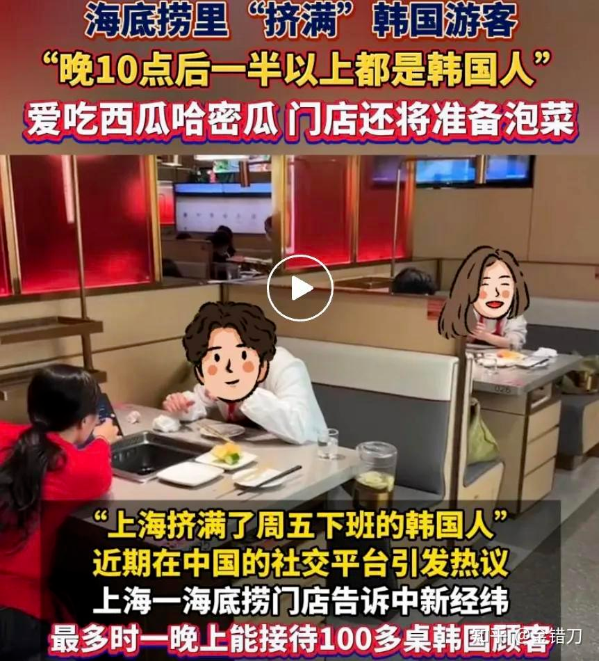 我这半年随手刷短视频,光是看到的韩国人来中国旅游的视频就有几十条,有拍海底捞的,有打卡霸王茶姬的,有探店很久以前烤串的,有专门来学汉语的,还有百万粉丝网红在上海坐地铁录vlog。