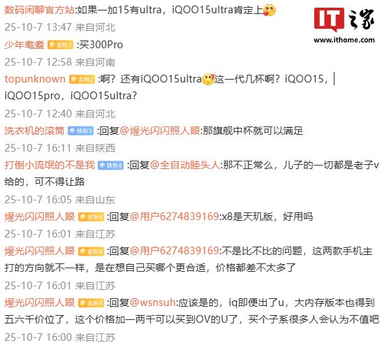 ”。结合评论区讨论来看,博主此处所指的 iQOO 15U 有望为 iQOO 15 Ultra 机型。