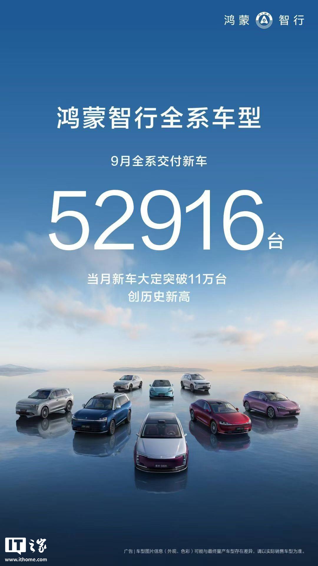 另外,鸿蒙智行在 10 月 1 日宣布,2025 年 9 月交付新车 52916 台,“成交均价持续稳居新势力品牌榜首”,全系累计交付突破 95 万台,向首个百万交付里程碑迈进。此外,鸿蒙智行 2025 年 9 月新车大定突破 11 万台,创历史新高。