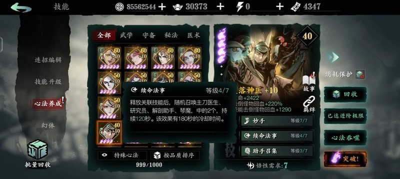 这套养成的关键在于提升千机万变绝技三的等级,紫色二星珍藏满级后绝技数值就已非常可观。