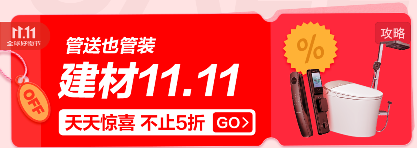 建材会场管送也管装、部分商品还可领取 5 折风暴券:点此前往主会场。