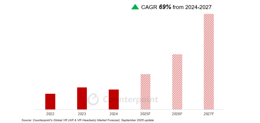 Counterpoint:2025上半年全球AR智能眼镜出货量同比增长50%