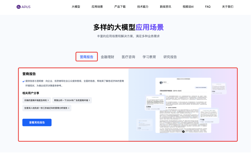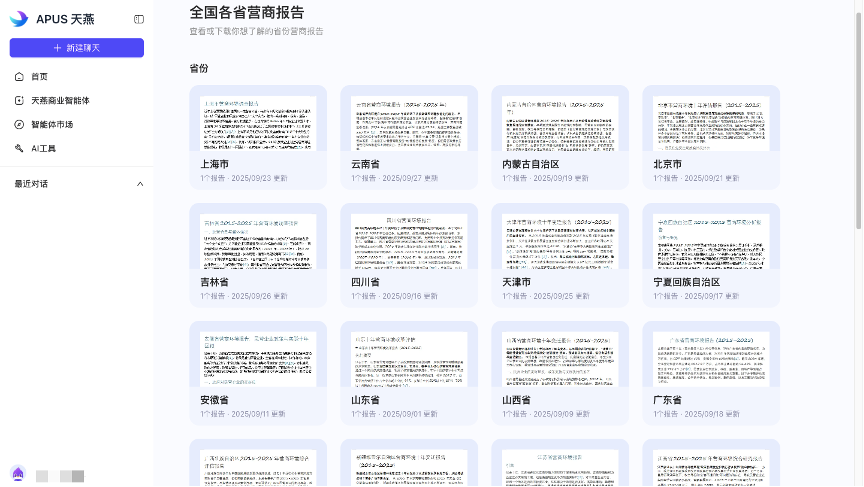 作为中国人工智能的先锋企业之一,APUS长期致力于将AI技术应用于产业治理、企业服务与公共数据透明化领域。此次在官网全新推出的“全国营商报告”模块,正是APUS在数字经济信息化道路上的又一次重要探索。该模块依托APUS强大的AI搜索与数据分析能力,对全国各省、市、自治区的营商环境进行系统梳理与智能评估,涵盖政策支持、产业基础、创新能力、市场潜力、营商便利度等多维度指标。