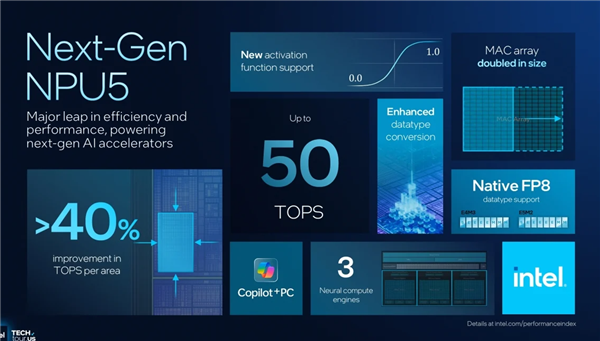 也就是说在Intel看来,所谓的AI PC现在不是追求极端性能的时候,还得看微软的配合,40TOPS是微软的Copilot+认证门槛,现在50TOPS也是够用的。
