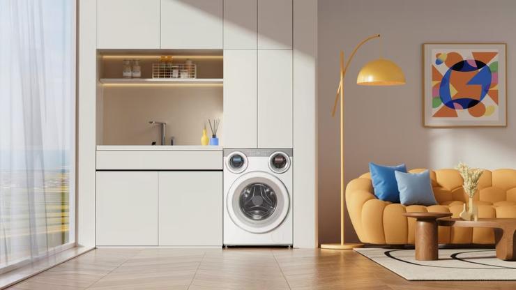 值得一提的是,这款产品的三个洗涤筒均配备了独立的烘干功能,实现了真正的“洗烘一体”体验,而其850mm的常规安装尺寸,让它可以轻松嵌入大多数家庭的阳台柜,无需改造即可完美适配。