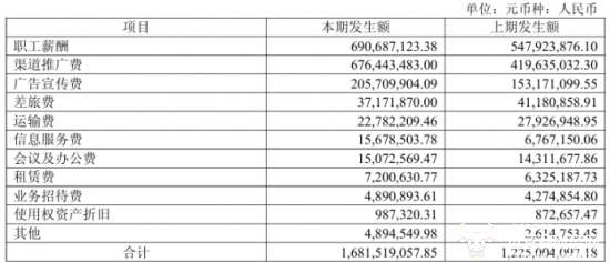 东鹏饮料2025年半年度报告显示,今年上半年,东鹏饮料销售费用达16.82亿元,同比增长37.27%。其中,渠道推广费为6.76亿元,同比增长61.20%,广告宣传费同比增长34.30%至2.06亿元。