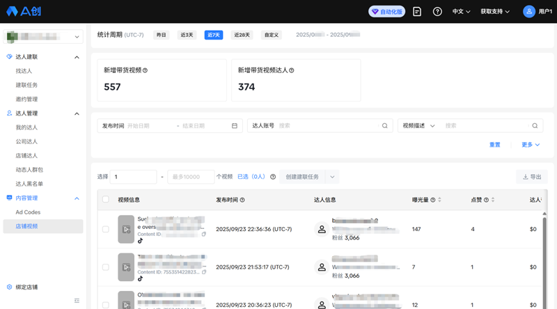 日均自动化触达达人超10,000名,日新增合作达人稳定在200名以上。