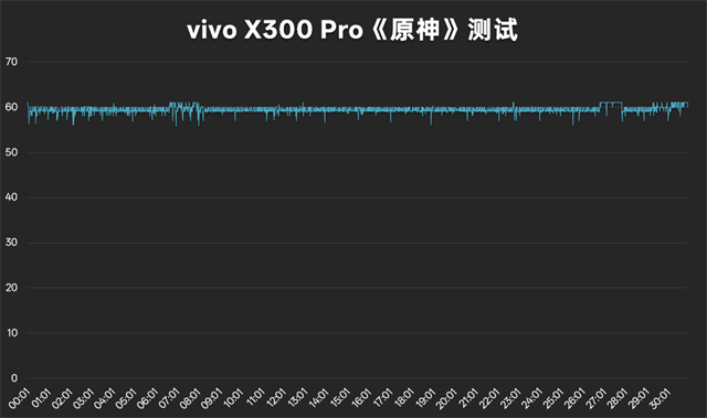 之后我们测试了《原神》60fps+最高画质,在须弥城内不断移动,平均帧率可达59.47,全程稳定,抖动率仅为0.75,并且最高温度仅为37.9℃,可以说vivo X300 Pro在游戏方面已经是在保持畅爽游戏的前提下,手机也不容易发烫了。