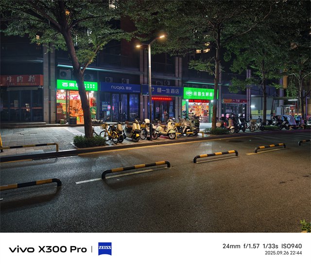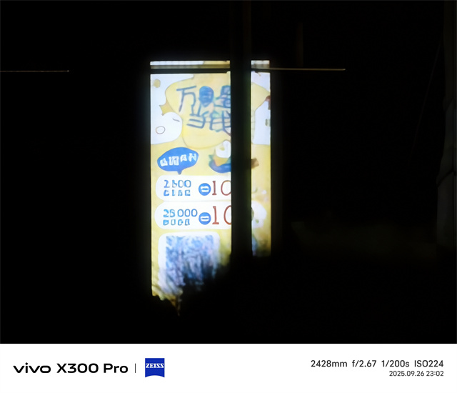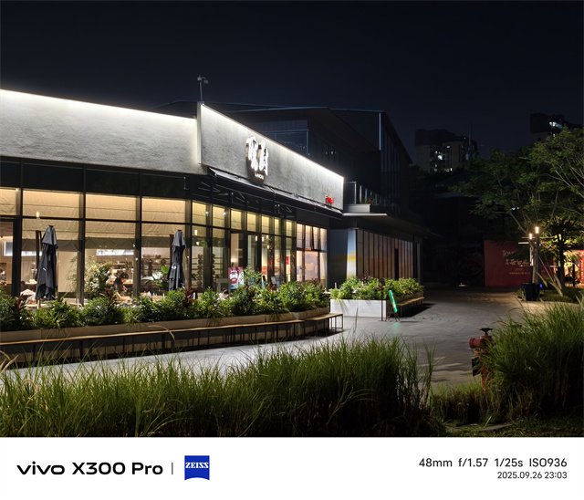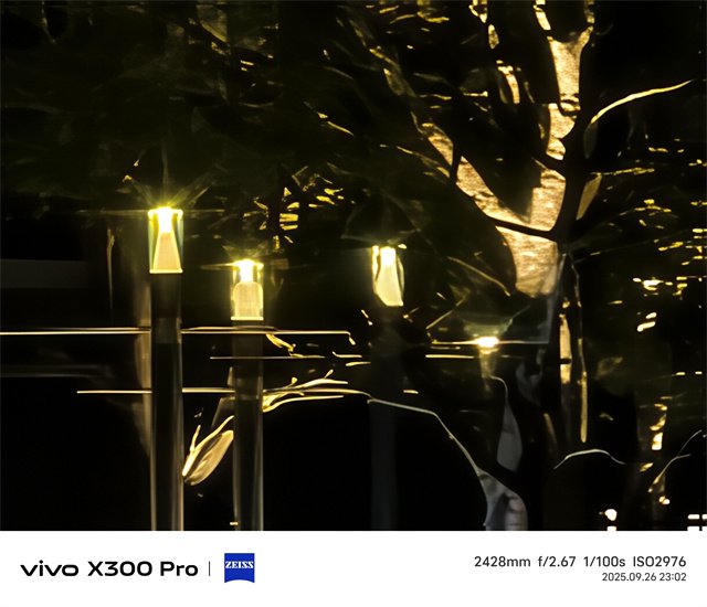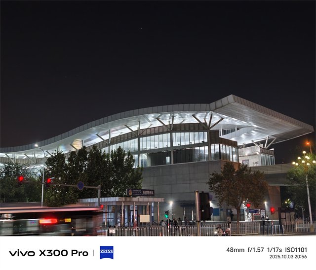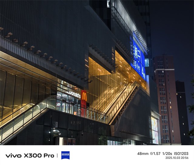夜景方面,得益于vivo X300 Pro的大底影像,进光量进一步提升,夜景的表现也十分出色,不仅画面解析度高,噪点控制的到位,就连长焦下的表现也是非常突出的,极限100倍的长焦下,依然能够看到远处景物的细节,这让vivo X300 Pro的长焦可用程度更高。高光压制的也十分到位,而暗处的细节也得到了很好的保留,夜景也是vivo X300 Pro的强项之一。