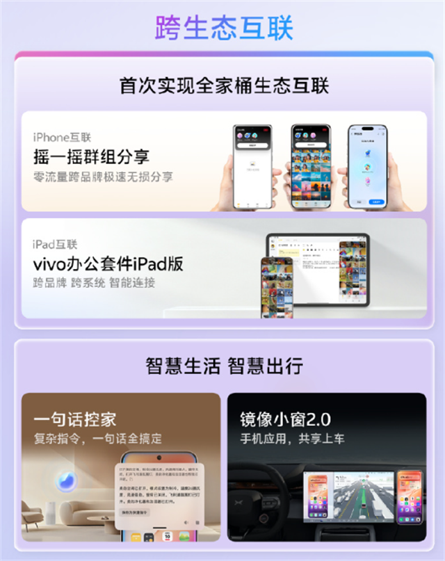 互联互通方面,行业首发苹果全家桶生态互联,手机、手表、平板、耳机、电脑全都能连,可以说是吃定“苹果”,像是投屏、文件管理、多功能同步、极速分享、无损传输、一拖分享这样的操作都是可以跨到iOS上的,真正做到了打破系统壁垒。