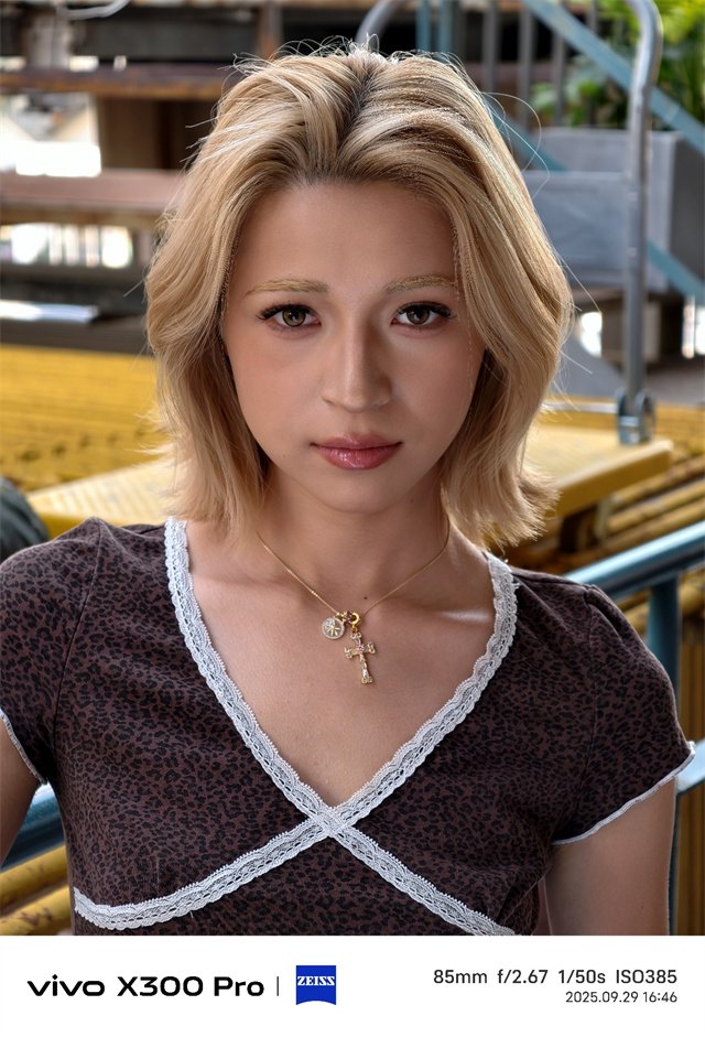 接下来自然是人像模式的样张了,蔡司自然人像,可以说真正的融合蔡司光影与东方审美,带来了自然美的真实美感,不仅仅是参数上的优化,通过AI的能力,进行了妆容保留、脸上自然的痣保留,配合骨相优化能够精准的消除疲态面部细节。