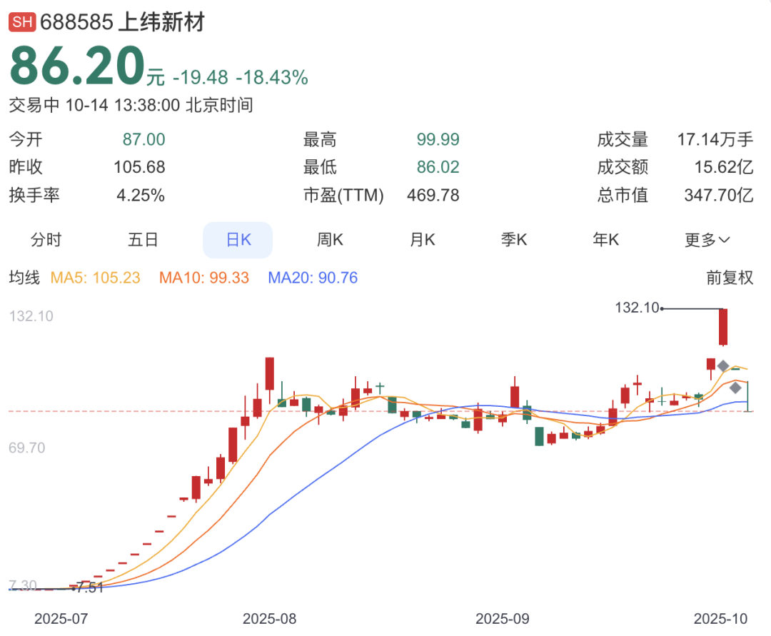 尽管双方多次否认“借壳上市”,但市场对其IPO的预期持续升温。自7月智元拟实控上纬新材以来,后者股价上涨超1100%,从8元/股一路飙升最高至132元/股。