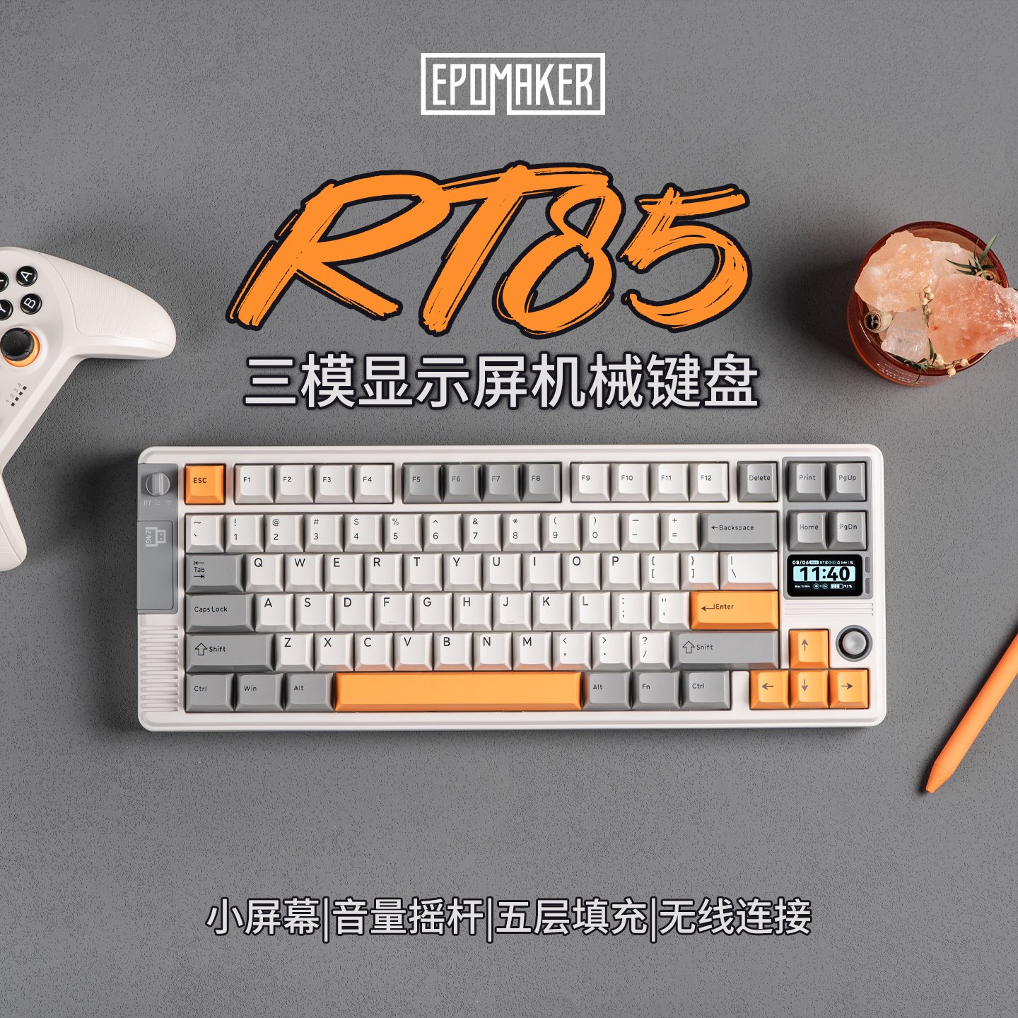 IT之家 10 月 16 日消息,EPOMAKER 本周早些时候发布了采用复古设计的 RT85 机械键盘,其采用 75% ANSI 配列,支持有线 USB-C / 无线 2.4GHz / 无线蓝牙三模连接。