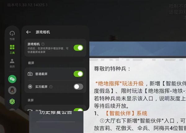 游戏助手提供回录、录屏、实时监控等功能,支持“一键回录”,还能截取LivePhoto格式的高光画面,轻松记录游戏精彩瞬间。