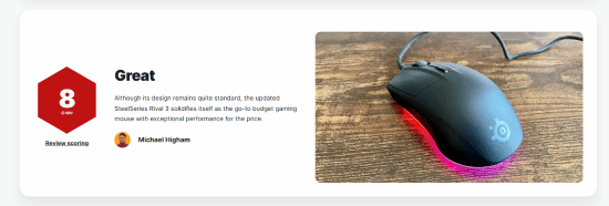IGN发布赛睿 Rival 3 (Gen 2) 有线游戏鼠标的评测文章,给出了8分的评价。