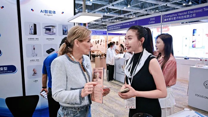本年度CTIS2025盛会汇聚近三千家展商,展示行业前沿科技成果,更加注重AI技术与日常生活的深度融合——从健康管理到情感陪伴,从智能家居到个人护理,AI正以前所未有的深度和广度改变着人们的生活方式。而洲明数字文化此次展出的多款产品,正是这一趋势下“科技x情感健康”的创新结合。