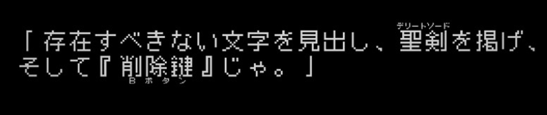 像是游戏里可以删除文字的关键道具“贝克斯贝斯(Back Space)之剑”。如果意译为“削字之剣”,黄政凯认为多少有些俗气,但如果仿照原作的处理方式,通过片假名模仿读音,感觉又显得过于洋气了。