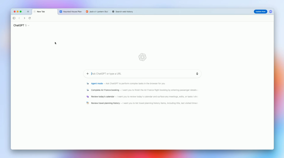 首先,和市面上许多恨不得把所有功能都塞进主页的 AI 浏览器不同,Atlas 在一众「花里胡哨」的 AI 浏览器中堪称一股极致清流;默认主页就是你现在已经很熟悉的 ChatGPT 交互界面。,也可以在这里一键进入智能体模式。