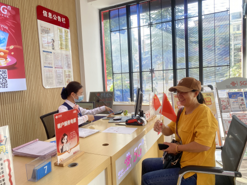国庆期间,每位进店的客户都将收到一面精致的小国旗,这不仅是恩施联通对祖国的深情献礼,更是对客户的温暖问候。营业厅工作人员表示:”我们希望通过这面小国旗,让每一位用户都能感受到浓厚的爱国情怀,同时也传递我们’百倍用心’的服务理念。”这一份小小的礼物,承载着恩施联通对祖国的深情祝福,也架起了与用户之间沟通的桥梁。