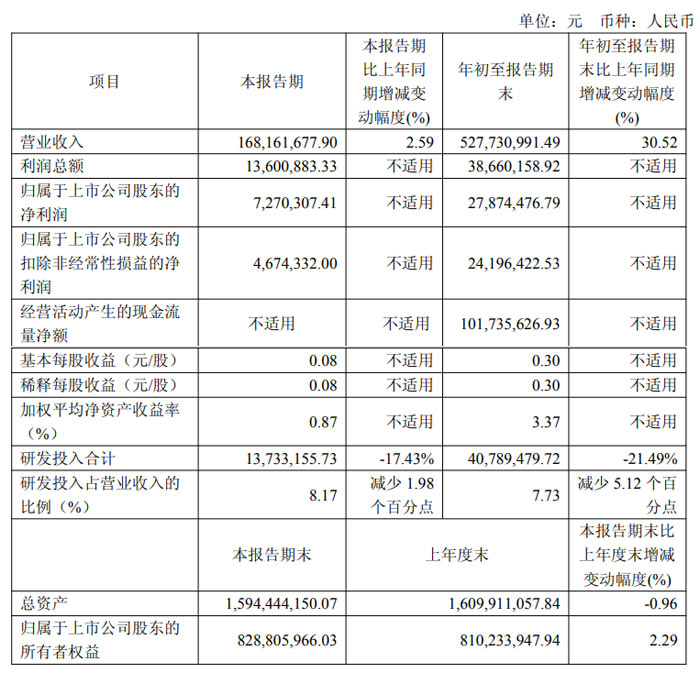 盈利水平大幅提升:前三季度,公司归属于上市公司股东的净利润达 2787.45 万元,归属于上市公司股东的扣除非经常性损益的净利润为 2419.64 万元,相较上年同期实现显著改善(上年同期为亏损);单三季度归属于上市公司股东的净利润 727.03 万元,扣非后净利润 467.43 万元,体现出公司主营业务盈利能力的持续增强。