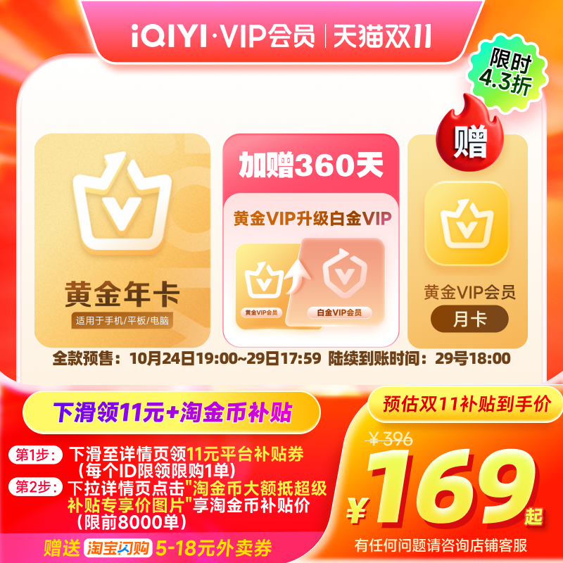 爱奇员年卡日常价 388 元,今日十一大促仅需 168.09 元破冰新低 + 赠 35 天黄金会员: