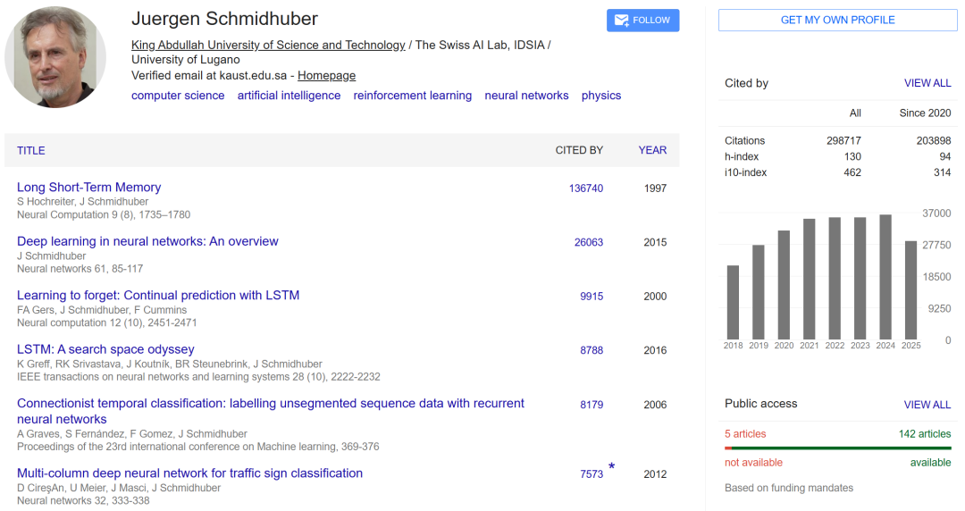 LSTM 之父 Juergen Schmidhuber(29 万 +)