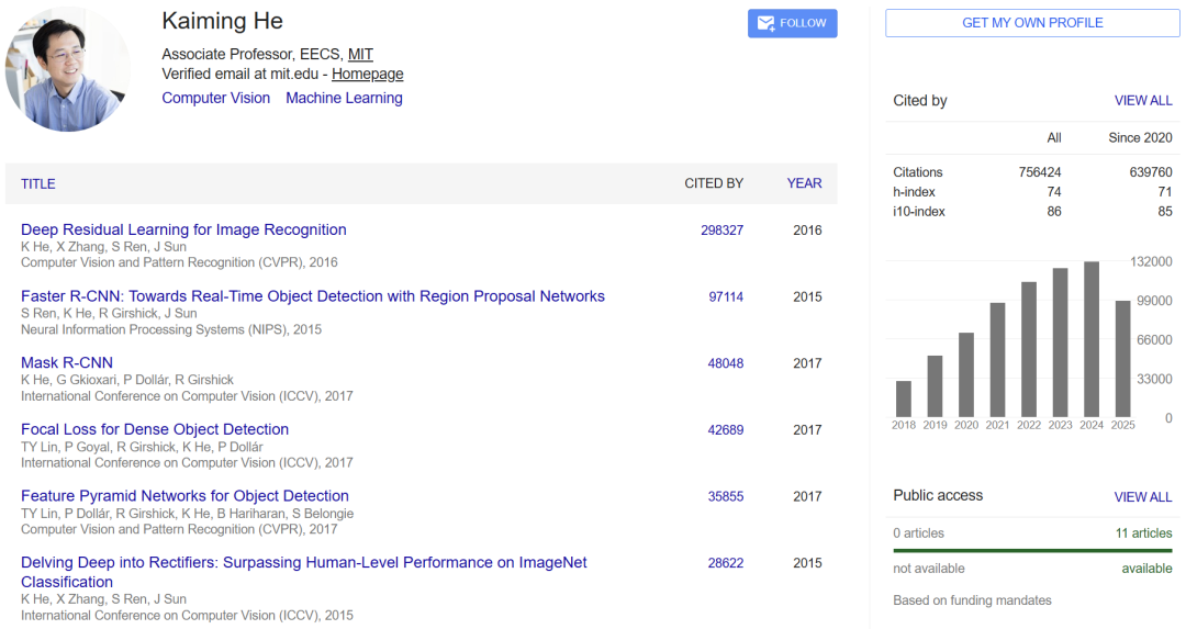 此外,他在视觉感知(如 Faster R-CNN、Mask R-CNN)和自监督学习(如 MoCo、MAE)领域的研究也广为人知。