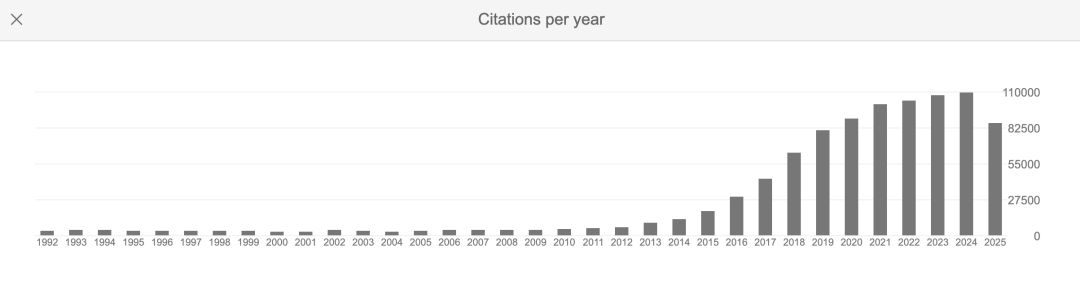 深度学习领域的论文引用呈现爆发式增长,正好暗合了我们所处的 AI 时代。