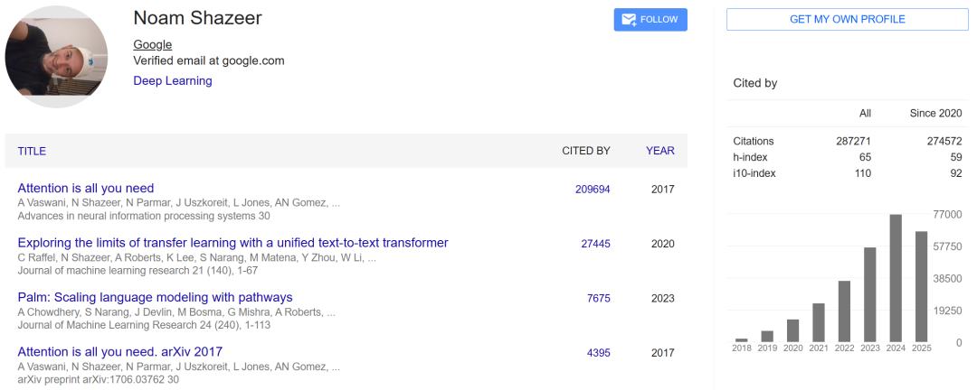 Gemini 的技术负责人 Noam Shazeer(28 万 +)