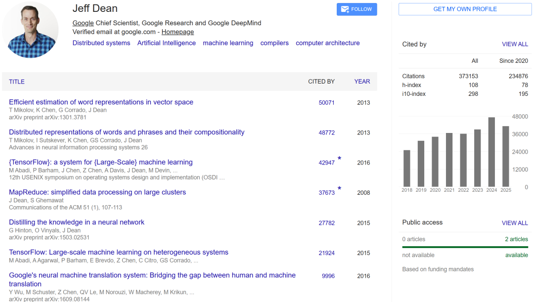 2022 年,他成为 h-index 全球引用次数最高的计算机科学家之一。