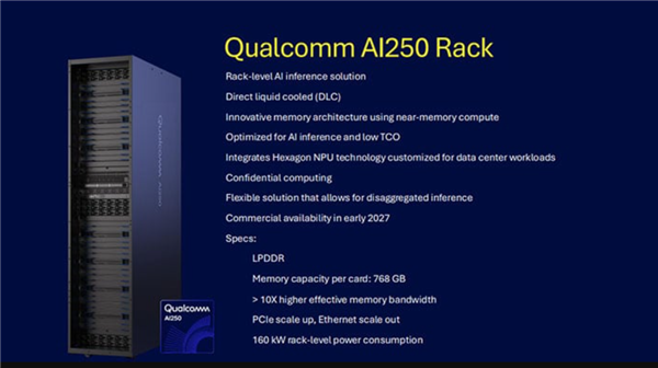 AI200及AI250的另一个优势就是超大内存,每张卡可支持768GB LPDDR内存,并且引入了创新的内存架构,功耗更低,为AI推理工作负载带来了效率及性能的飞跃提升。