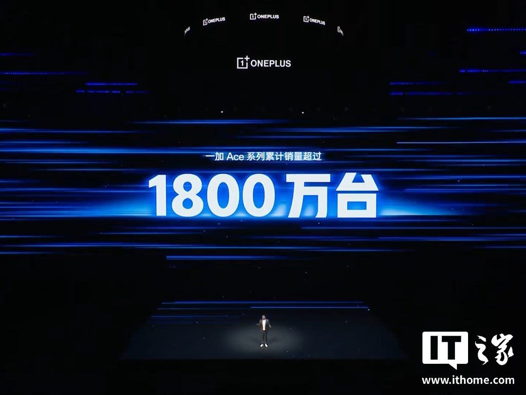 IT之家注意到,一加中国区总裁李杰还透露了一组数据:一加 Ace 系列手机销量累计超过 1800 万台。作为参考,李杰在今年 5 月的一加 Ace 5 至尊系列新品发布会上透露,一加 Ace 系列手机销量累计超过 1500 万台。